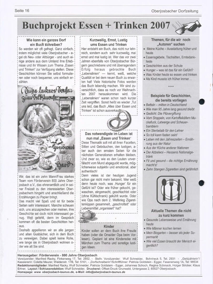 Weiter unten lassen sich bereits viele ältere Dorfzeitungs-Ausgaben als PDF herunterladen oder direkt lesen. Allerdings sind einige der frühen Ausgaben noch nicht digitalisiert – wer sich hier fachkundig einbringen möchte, ist herzlich willkommen!