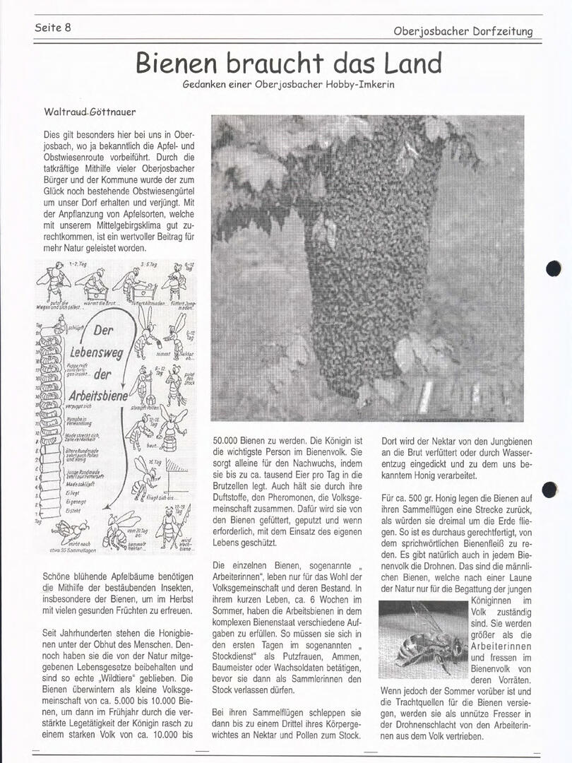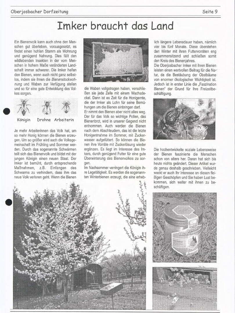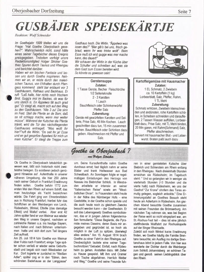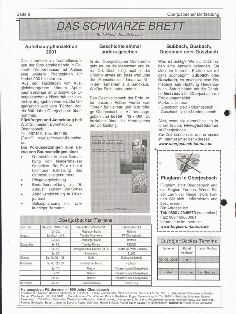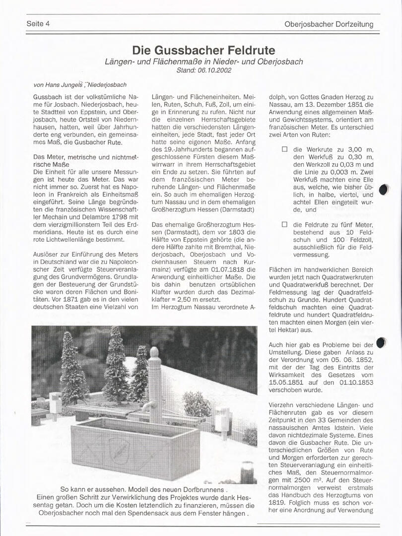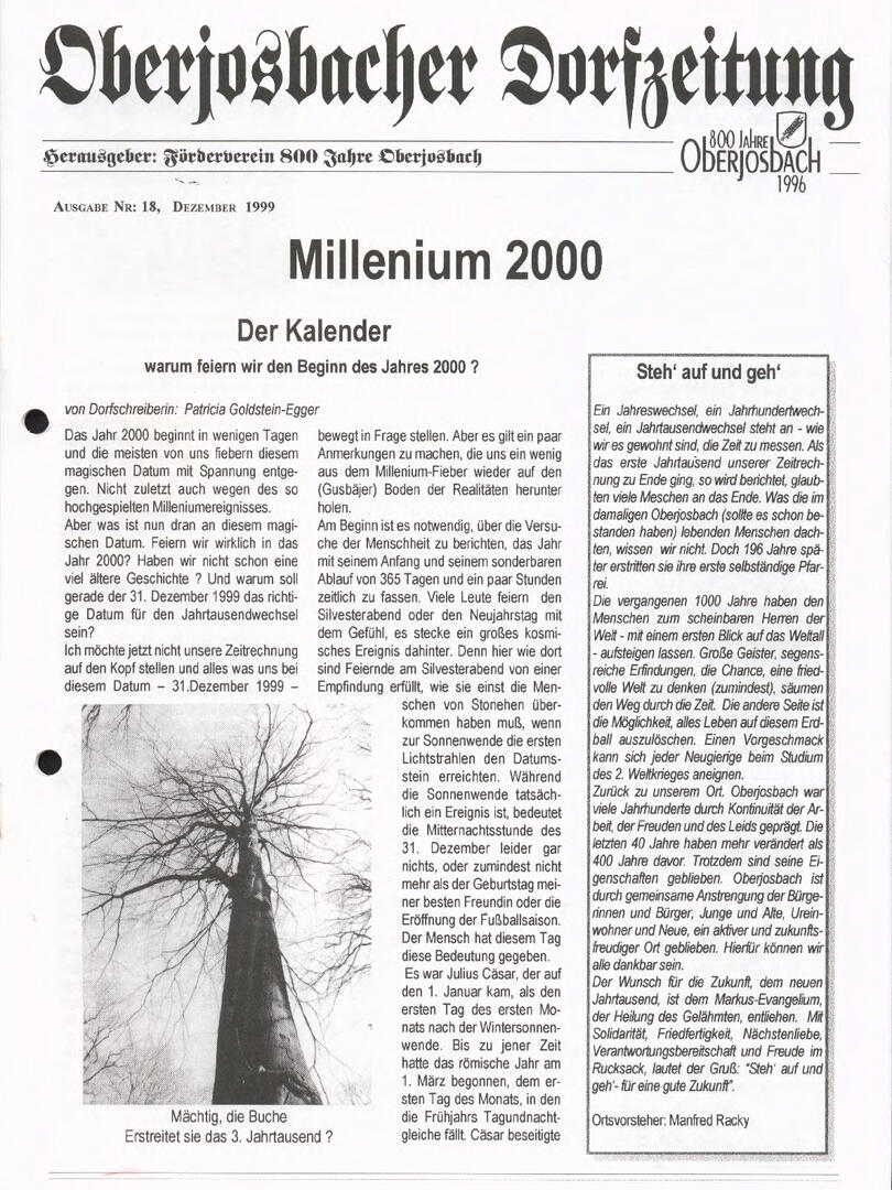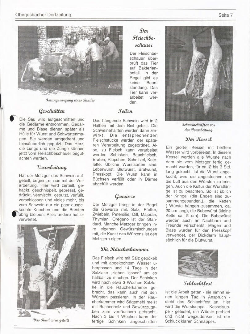 Im November 1994 erschien die erste Ausgabe der Oberjosbacher Dorfzeitung – ursprünglich, um die Oberjosbacher auf das bevorstehende 800-jährige Ortsjubiläum einzustimmen und zu motivieren. Anfangs wurde die Zeitschrift viermal im Jahr veröffentlicht. Doch aufgrund des hohen Arbeitsaufwands und der damals beträchtlichen Druckkosten musste die Erscheinungsfrequenz im Laufe der Jahre reduziert werden – zunächst auf zwei, später auf eine Ausgabe pro Jahr.