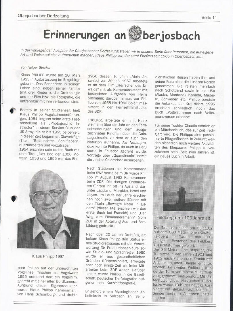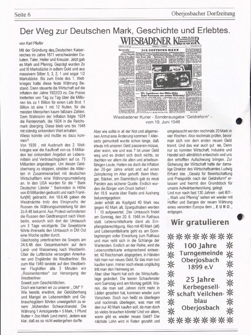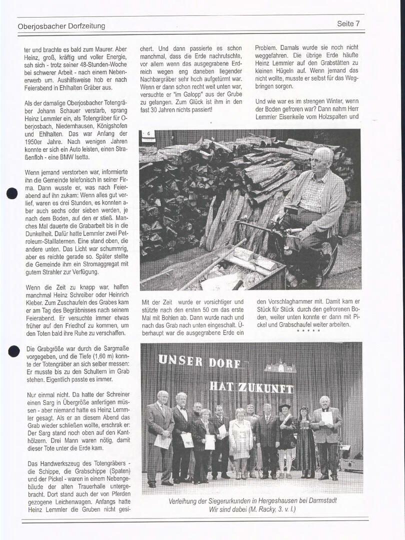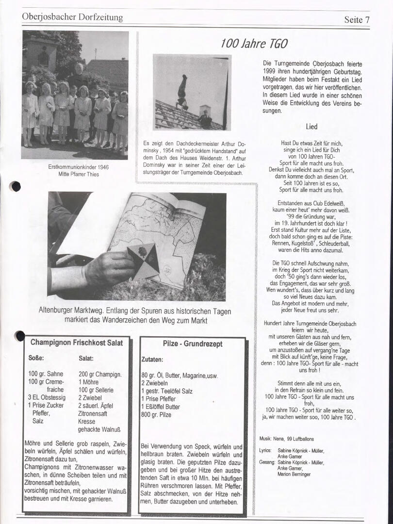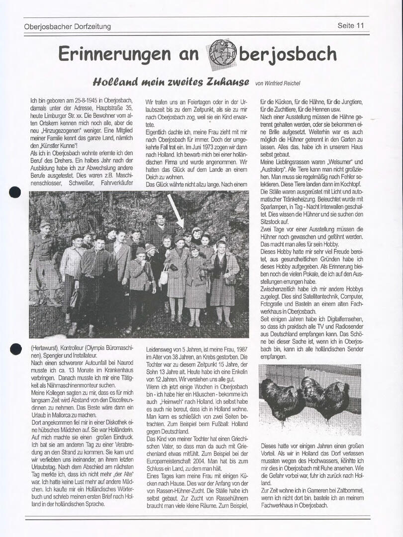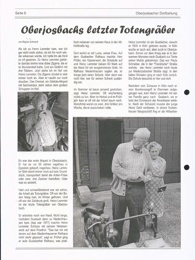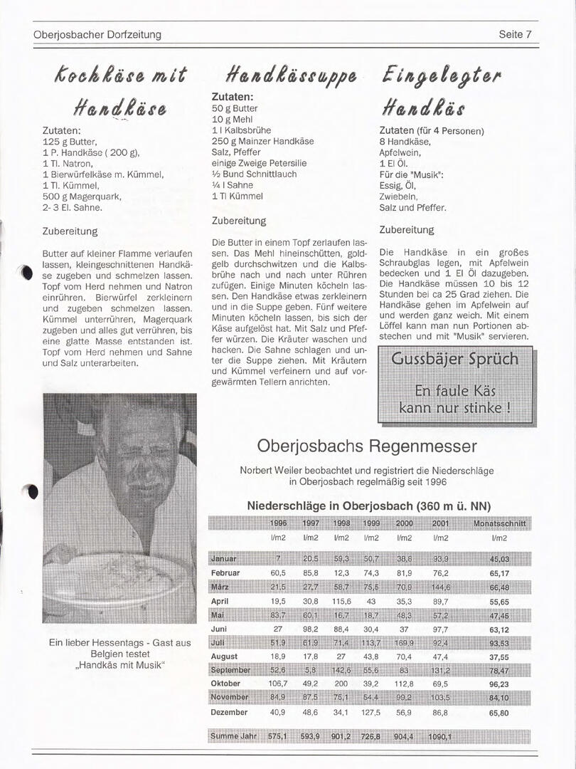Im November 1994 erschien die erste Ausgabe der Oberjosbacher Dorfzeitung – ursprünglich, um die Oberjosbacher auf das bevorstehende 800-jährige Ortsjubiläum einzustimmen und zu motivieren. Anfangs wurde die Zeitschrift viermal im Jahr veröffentlicht. Doch aufgrund des hohen Arbeitsaufwands und der damals beträchtlichen Druckkosten musste die Erscheinungsfrequenz im Laufe der Jahre reduziert werden – zunächst auf zwei, später auf eine Ausgabe pro Jahr.