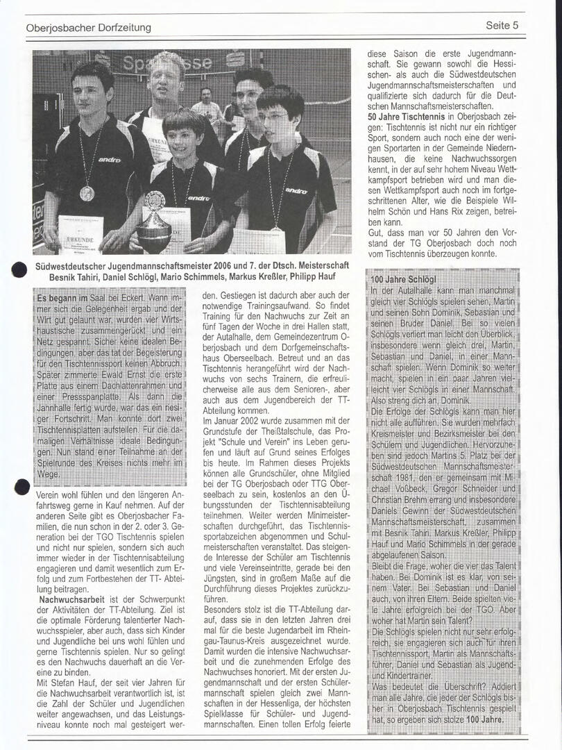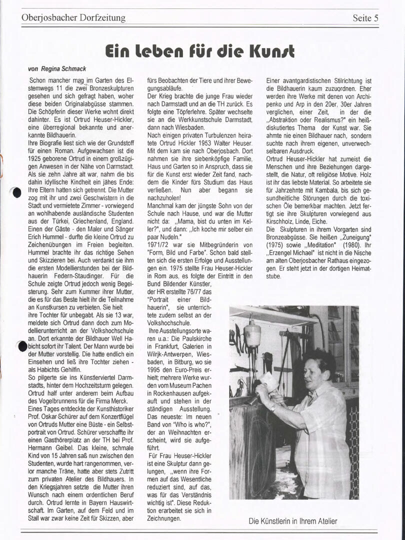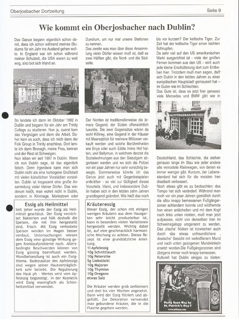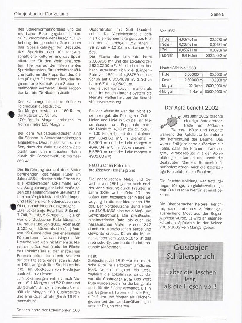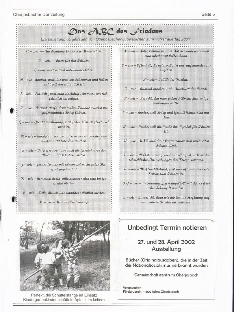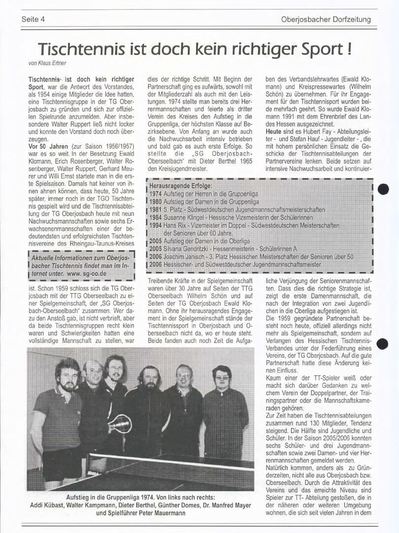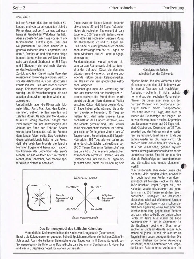 Im November 1994 erschien die erste Ausgabe der Oberjosbacher Dorfzeitung – ursprünglich, um die Oberjosbacher auf das bevorstehende 800-jährige Ortsjubiläum einzustimmen und zu motivieren. Anfangs wurde die Zeitschrift viermal im Jahr veröffentlicht. Doch aufgrund des hohen Arbeitsaufwands und der damals beträchtlichen Druckkosten musste die Erscheinungsfrequenz im Laufe der Jahre reduziert werden – zunächst auf zwei, später auf eine Ausgabe pro Jahr.