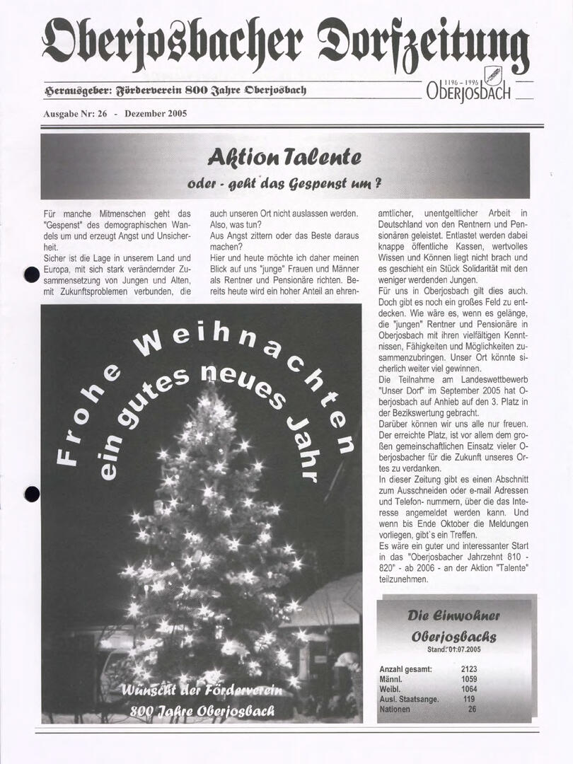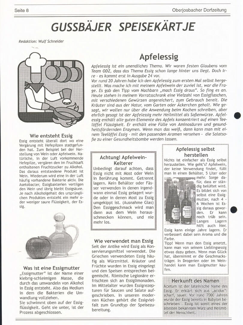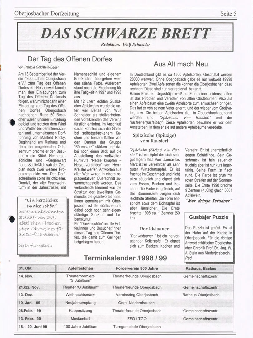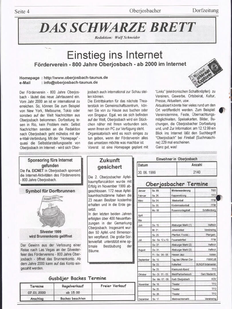 Weiter unten lassen sich bereits viele ältere Dorfzeitungs-Ausgaben als PDF herunterladen oder direkt lesen. Allerdings sind einige der frühen Ausgaben noch nicht digitalisiert – wer sich hier fachkundig einbringen möchte, ist herzlich willkommen!