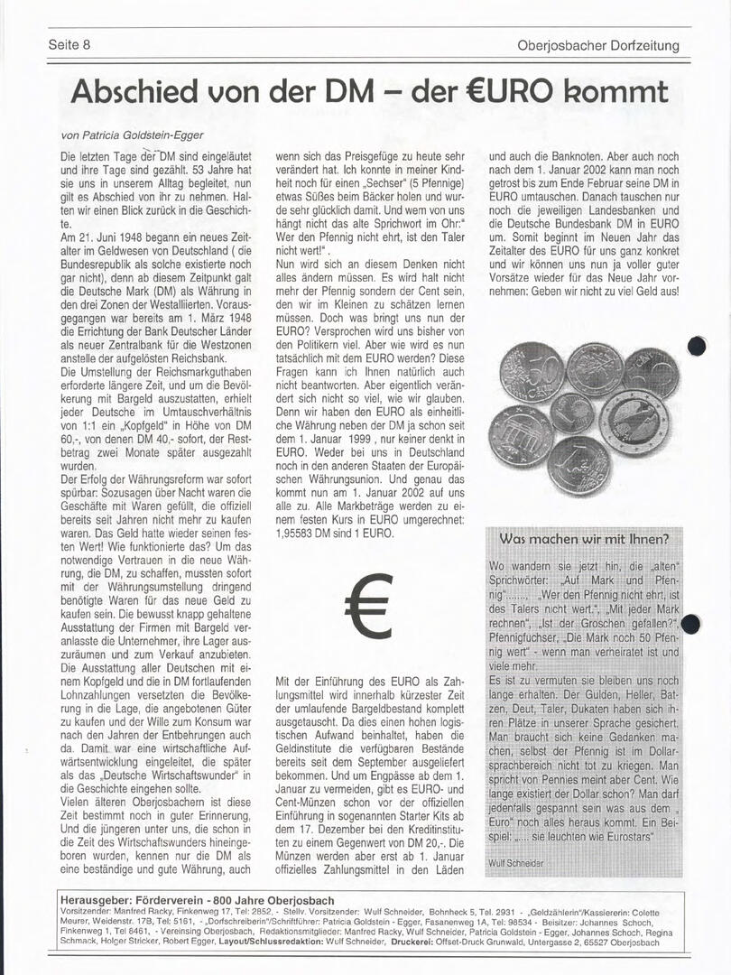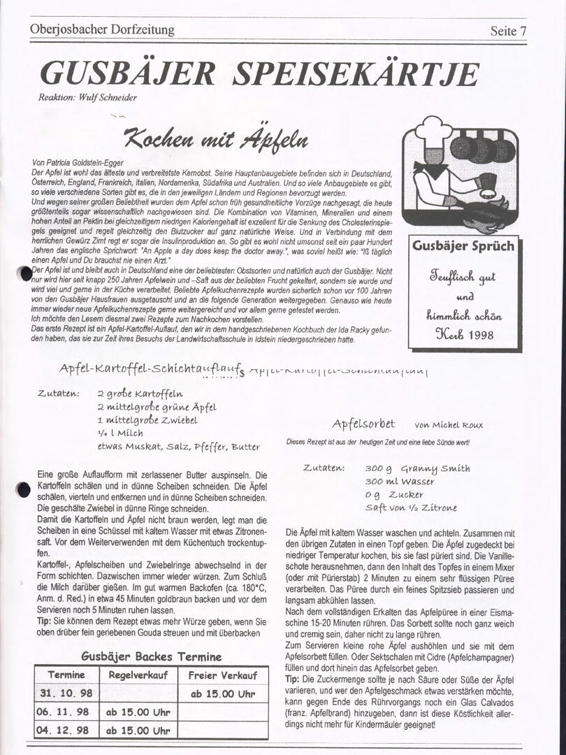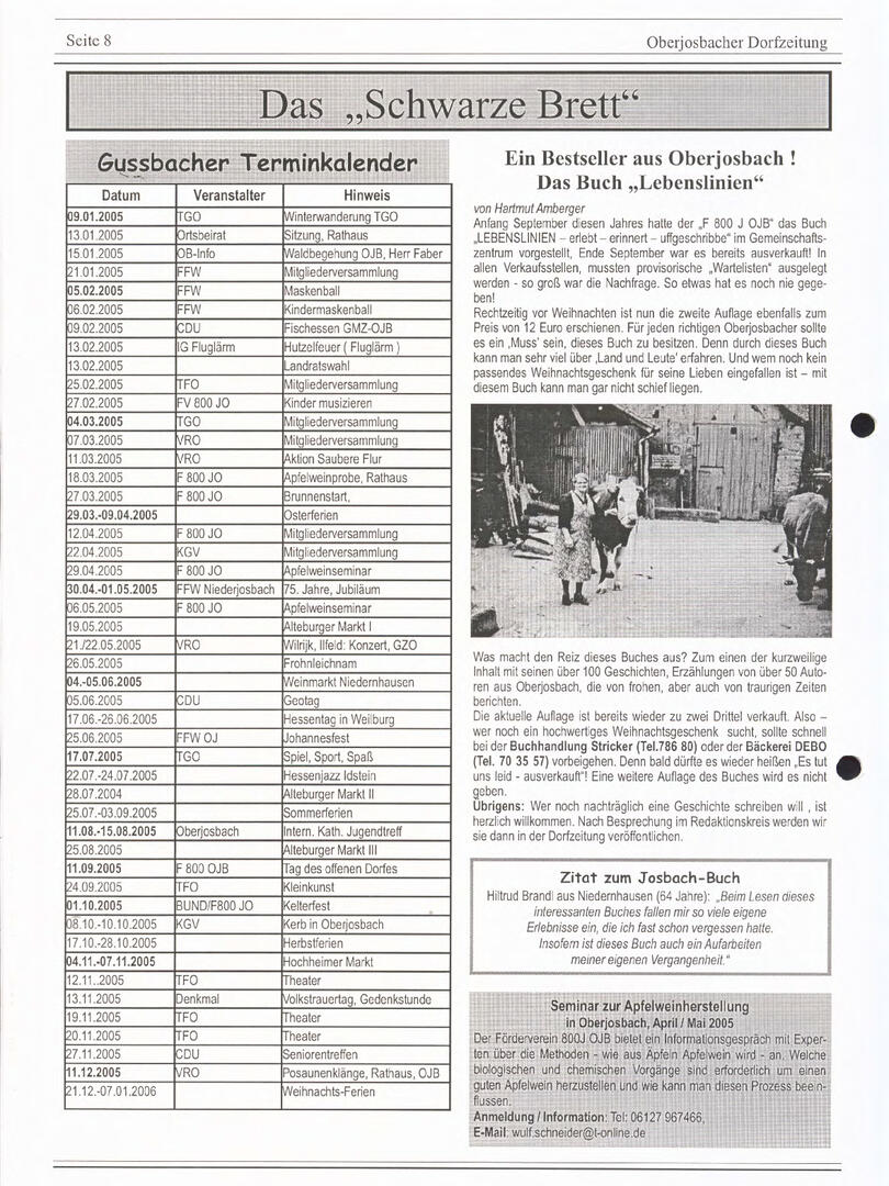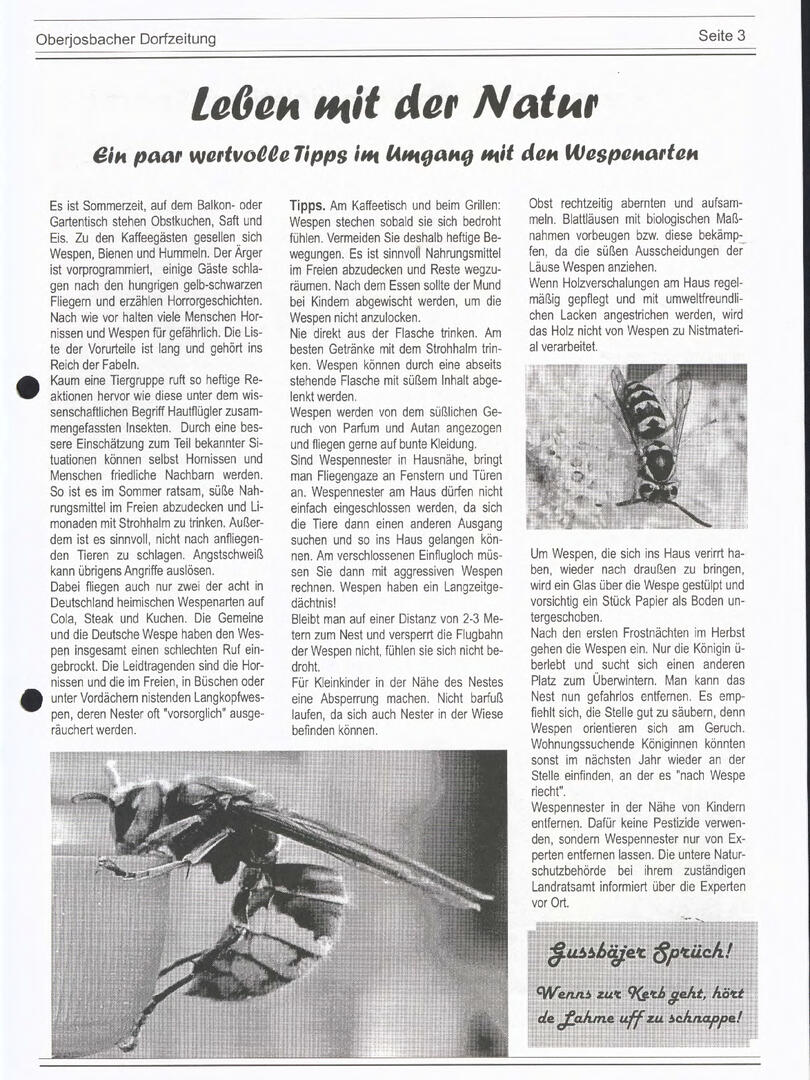 Weiter unten lassen sich bereits viele ältere Dorfzeitungs-Ausgaben als PDF herunterladen oder direkt lesen. Allerdings sind einige der frühen Ausgaben noch nicht digitalisiert – wer sich hier fachkundig einbringen möchte, ist herzlich willkommen!