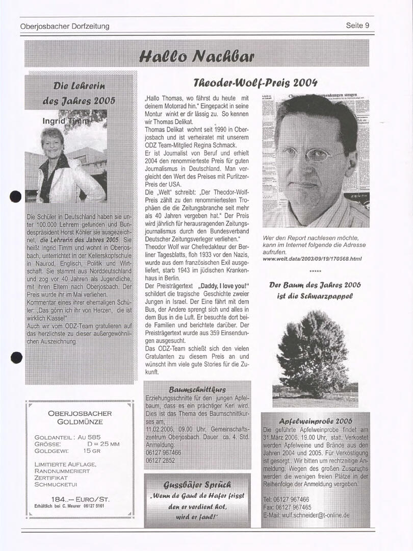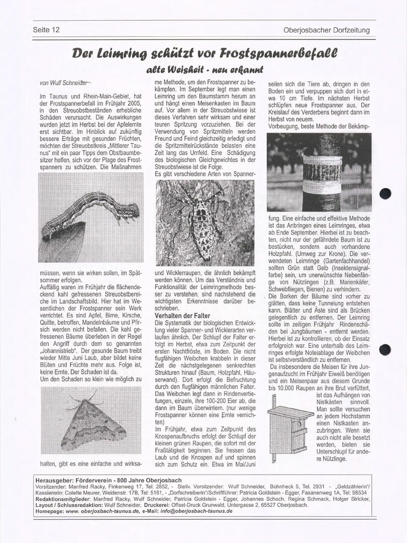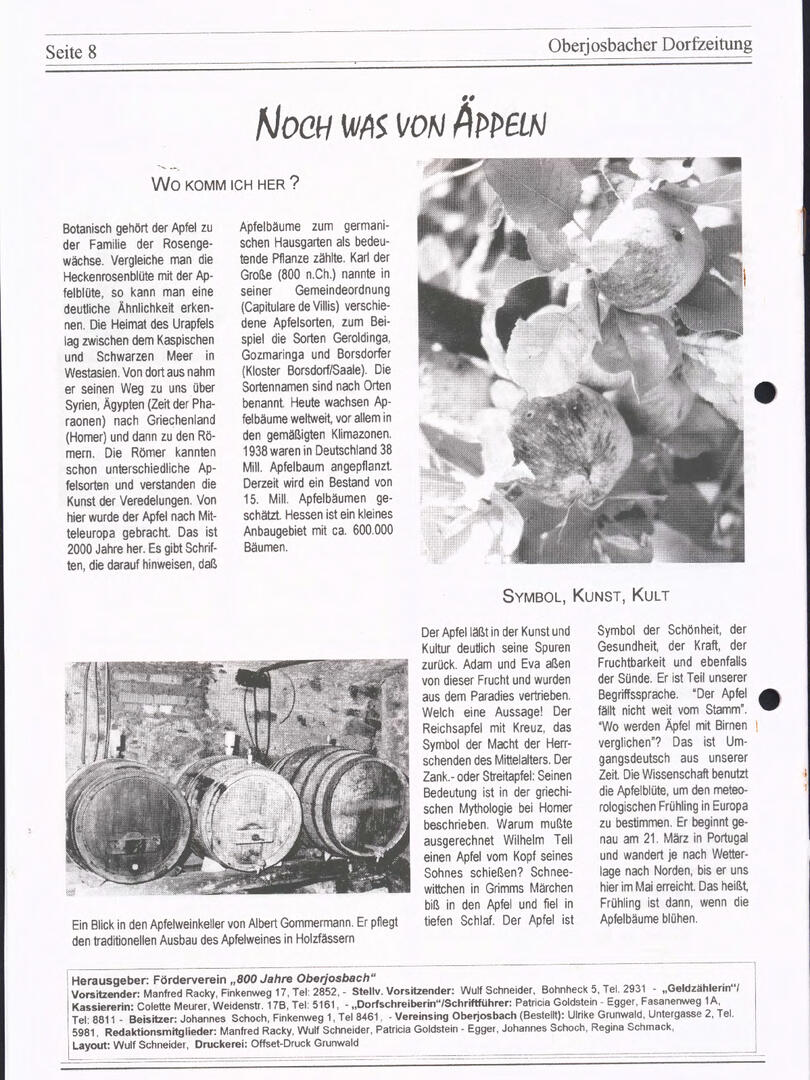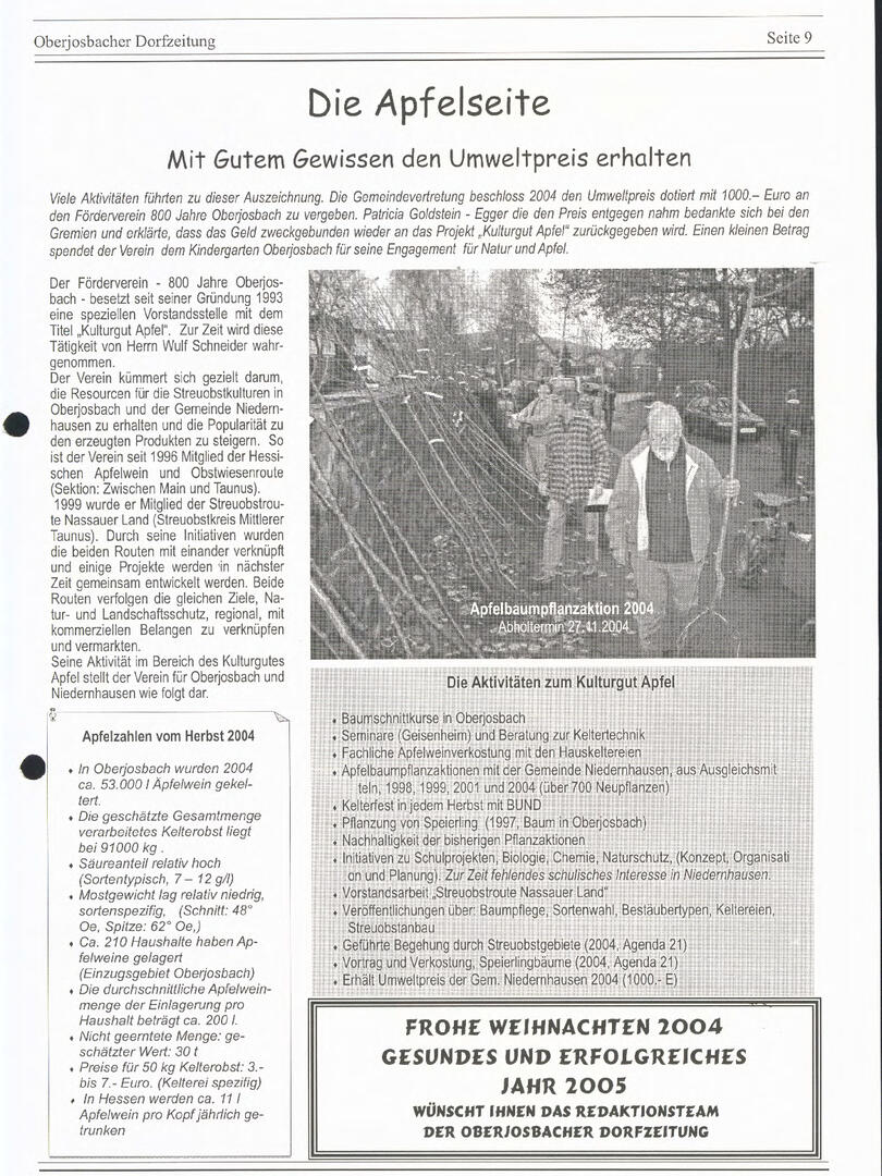 Bis Ende 2024 wurde die Redaktionsarbeit von Wulf Schneider koordiniert, der mit viel Engagement spannende Artikel zu Natur, Geschichte, Wetter, Apfelthemen und Kulinarik beigesteuert hat. Doch auch viele weitere Autorinnen und Autoren haben mit ihren Beiträgen die ODZ bereichert – ihnen allen ein herzliches Dankeschön!